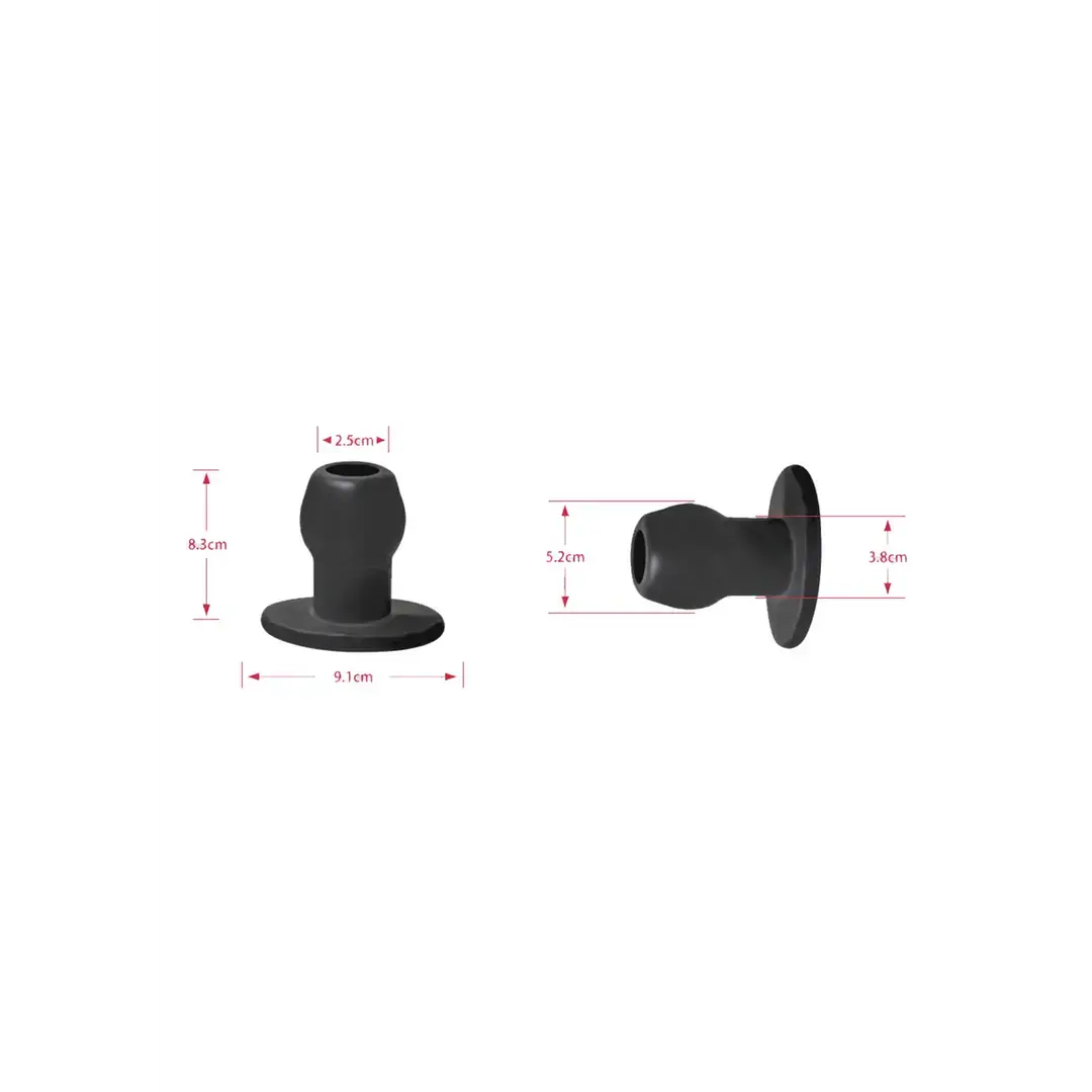 This innovative butt plug features a hollow tunnel that goes all the way through, allowing for versatile play such as lube insertion, fingers, watersports, and even seeing through the plug. The clear version offers a unique visual experience.