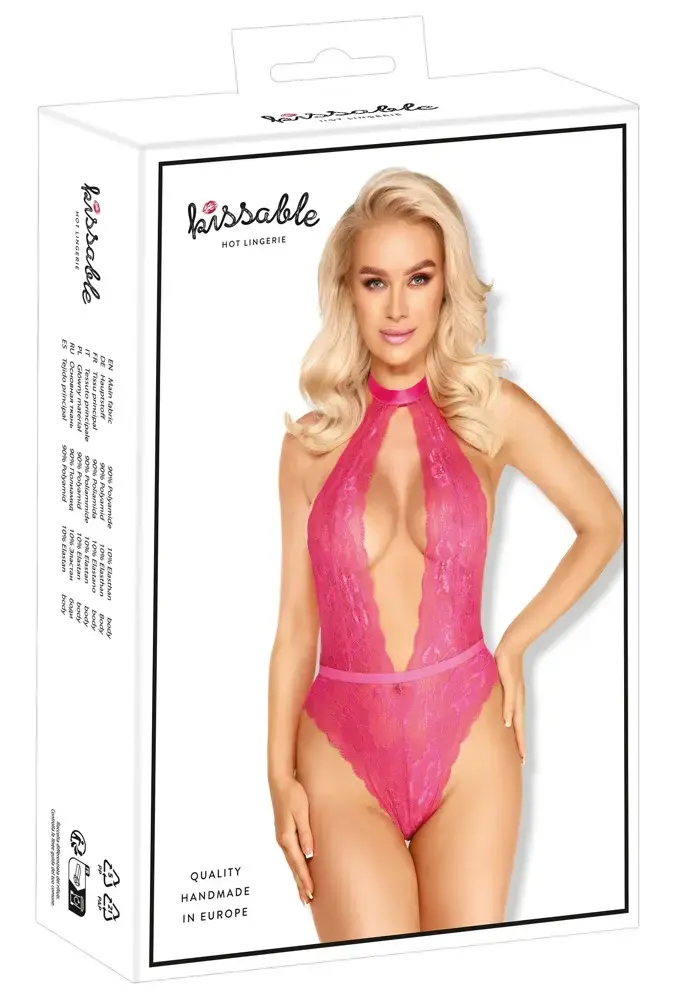Izbaudiet ekskluzīvo kissable mežģīņu bodija stilu. Radīts rotaļīgam un pavedinošam izskatam, šis modelis izceļas ar drosmīgu izgriezumu no kakla līdz viduklim un atvērtu muguras daļu, kas lieliski akcentē siluetu.