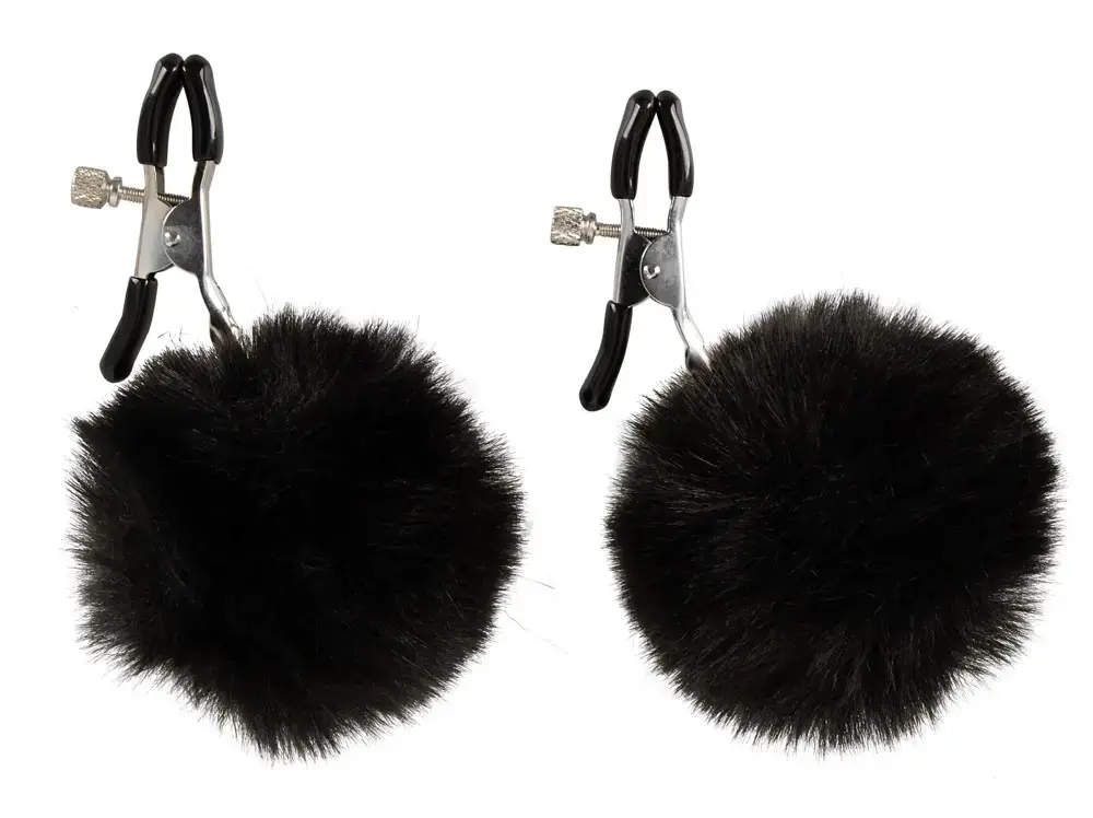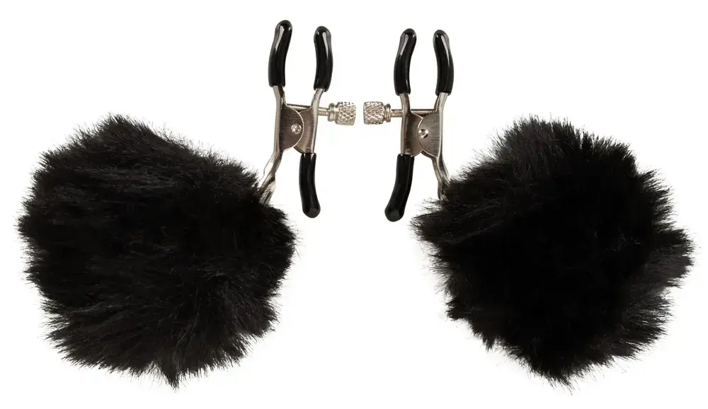Šīs vieglās metāla krūšu galu skavas no Magic Shiver piedāvā regulējamu spiedienu maņām vai aizraujošām sajūtām. Tās ir rotātas ar pavedinošiem, pūkainiem melniem pomponiem, piešķirot ārkārtīgi pievilcīgu izskatu. Šis pāris ir paredzēts valdzinošai krūšu galu rotaļai.