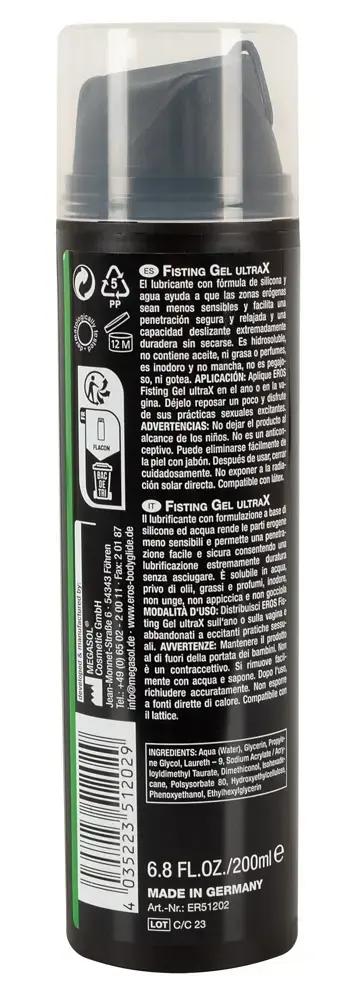 Izbaudiet ilgstošu komfortu ar EROS Fisting Gel UltraX — augstas kvalitātes hibrīda lubrikantu, kas radīts intensīviem intīmiem mirkļiem. Tā unikālā formula nodrošina izcilu slīdamību un neizžūst, garantējot gludu un patīkamu pieredzi katru reizi.