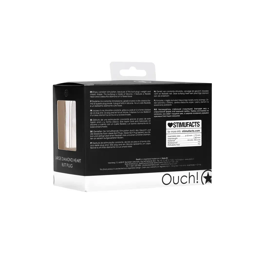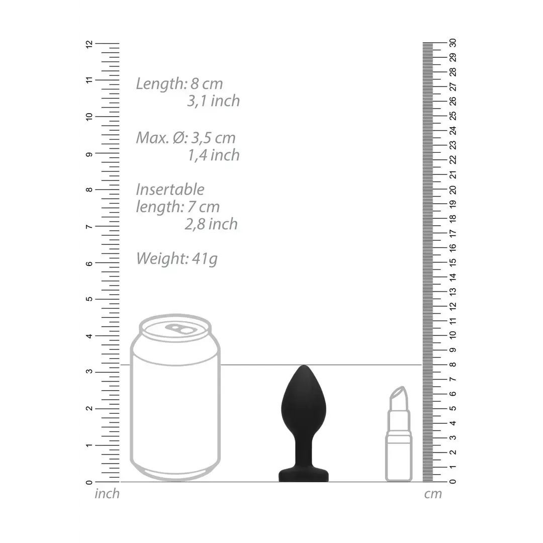 This weighted butt plug offers constant stimulation with its classic shape and flexible neck. The flared base is adorned with a beautiful diamond. Made from body-safe silicone, it provides a comfortable and secure fit for extended wear.