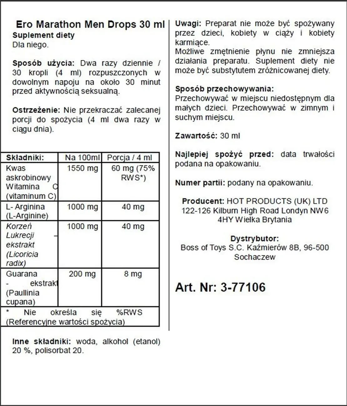 Ero Marathon Men Drops ir paredzēti vīriešiem ar aktīvu seksuālo dzīvi, kuri vēlas uzlabot savu sniegumu un paildzināt intīmo baudu. Šie pilieni palīdz uzturēt spēcīgāku erekciju un sniedz papildu erotisko enerģiju vēl aizraujošākai pieredzei.