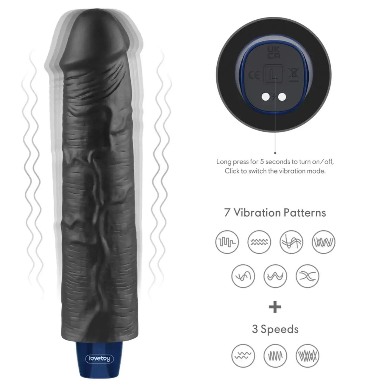 REAL SOFTEE uzlādējams vibrējošs dildo – 24 cm (9.5″) – Melns