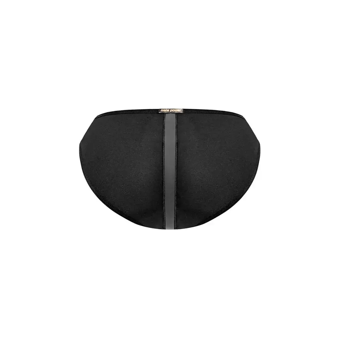 Experience comfort and style with the Landing Strip Bikini Brief from Male Power. This piece features a sleek design with plush elastic trim on the waist and legs for a secure yet comfortable fit, complemented by a matte onyx insert strip for a modern look.