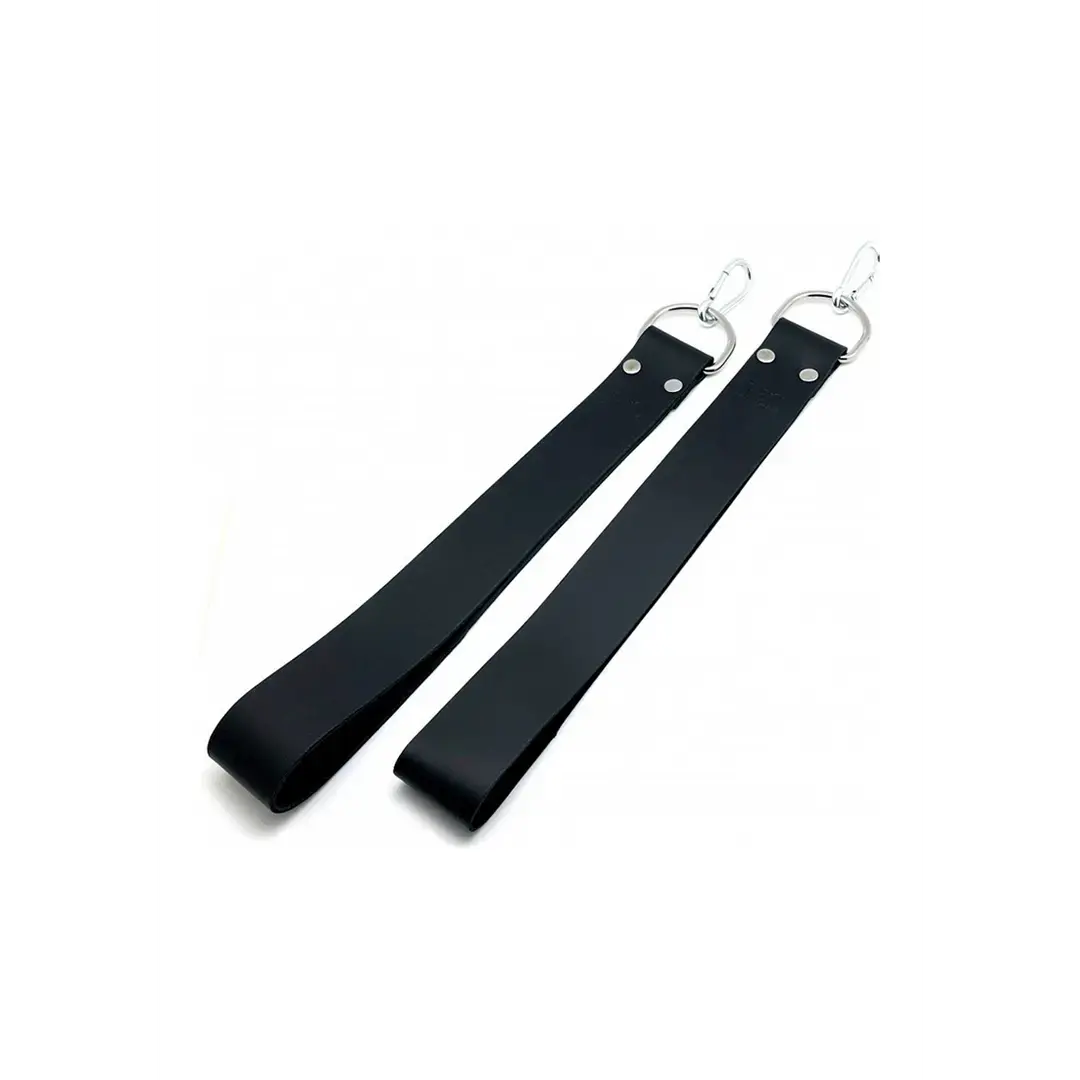 This Black set consists of 2 foot supports that fit on the sling. They allow for easy positioning and comfort. The supports are made of genuine leather with metal rings.