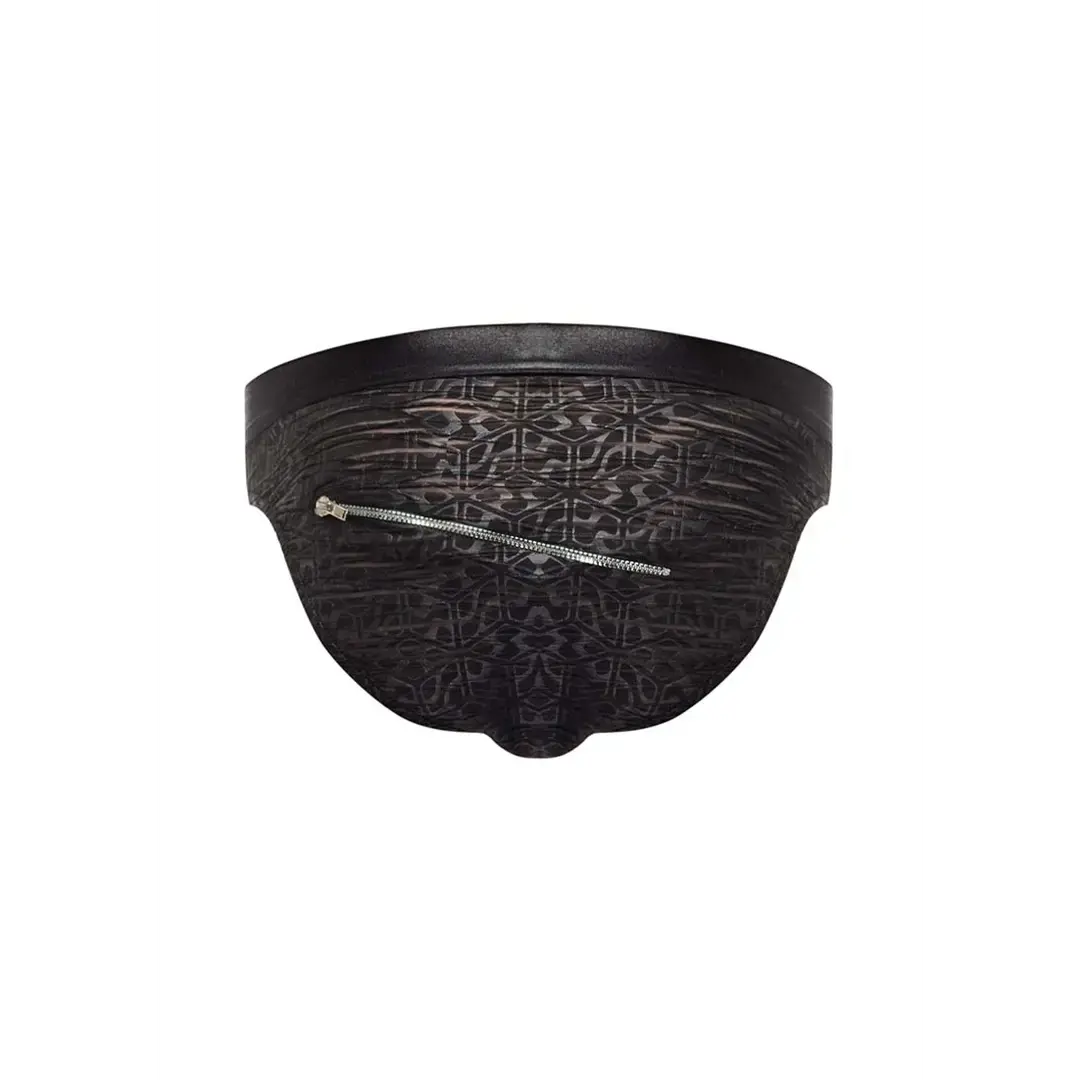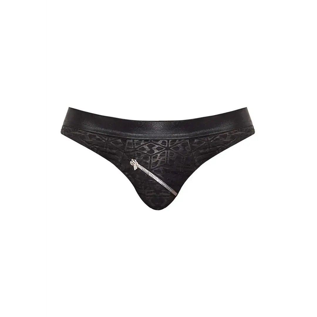 Zip bikini apakšbikses ir drosmīgs un provokatīvs vīriešu apakšveļas modelis, kas izceļas ar savu unikālo dizainu. Šis modelis ir aprīkots ar diagonāliem rāvējslēdzējiem gan priekšpusē, gan aizmugurē, nodrošinot gan stilīgu izskatu, gan ērtu lietošanu.