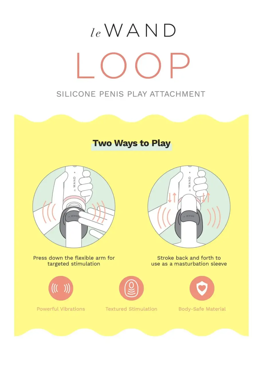 Pārvērtiet savu Le Wand masāžas vibratoru par jaudīgu rotaļlietu kopīgai vai solo masturbācijai ar Loop uzgali. Izstrādāts, lai uzliktu uz dzimumlocekļa galviņas, supermīkstais interjers un elastīgā rokas daļa rada bezgalīgus baudas viļņus. Kustiniet vibratoru uz priekšu un atpakaļ, lai izmantotu Loop kā galveno masturbācijas uzmavu.