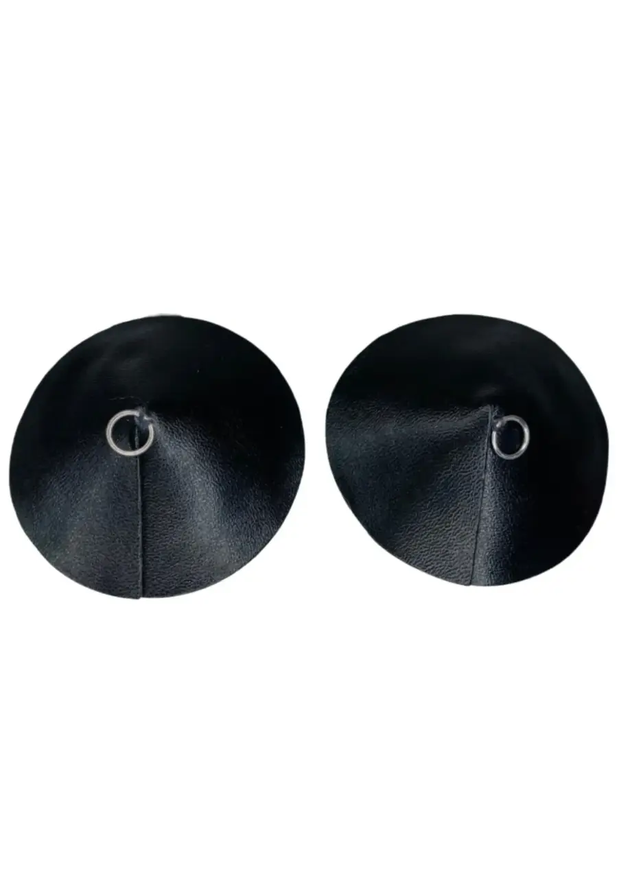 Kinky Diva PU ādas imitācijas krūšu uzlikas ar gredzenu – sudraba – One size