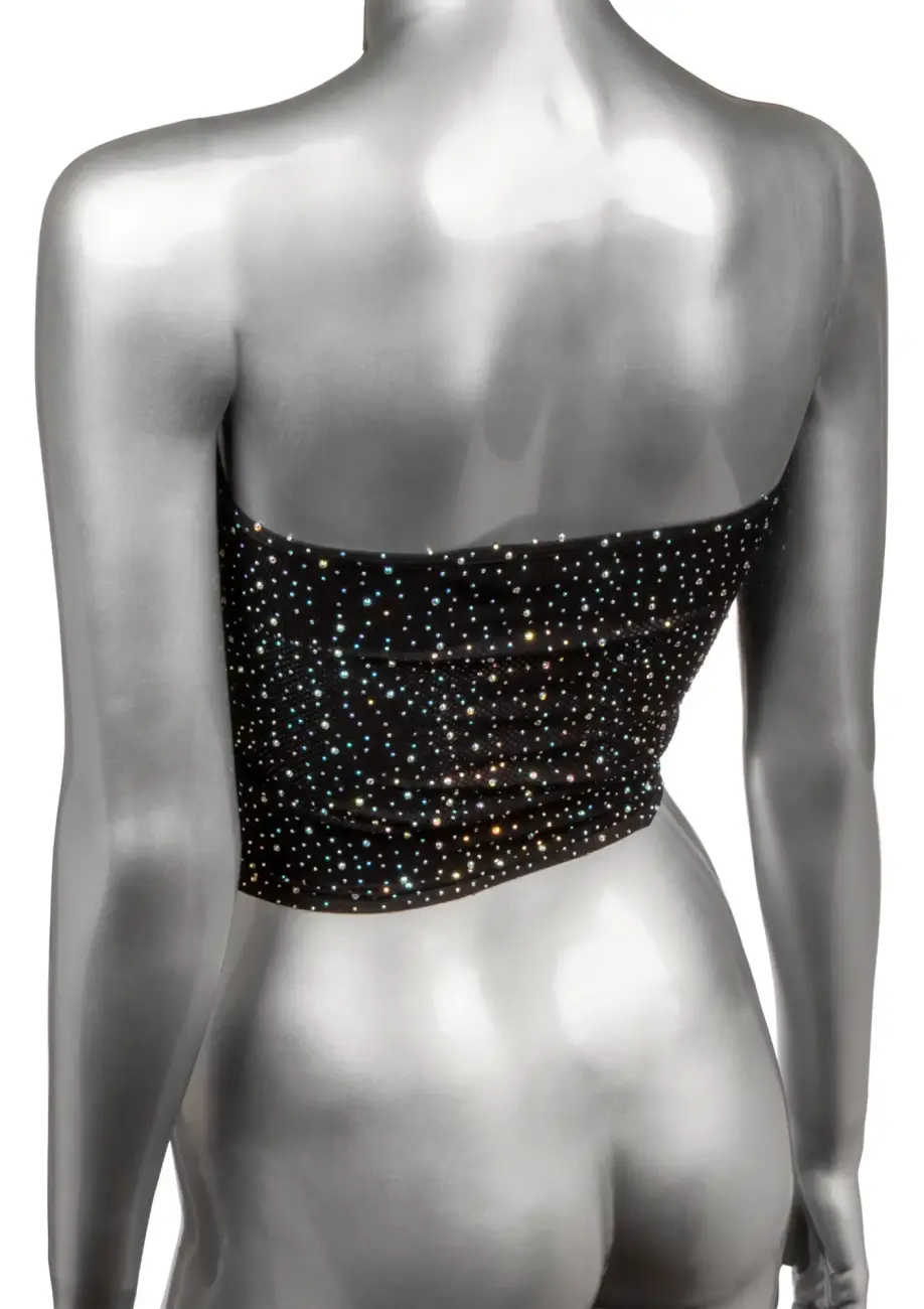 Papildiniet savu garderobi ar Radiance bandeau tipa topu, kas izgatavots no mīksta un elastīga materiāla, nodrošinot lielisku piegulšanu. Tā elpojošais tīkliņa dizains garantē komfortu jebkurā mirklī. Rotāts ar dekoratīviem akmentiņiem, tas piešķir mirdzumu un šarmu gan īpašiem gadījumiem, gan ikdienas elegancei.