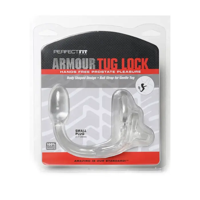 Armor Tug Lock - Dzimumlocekļa gredzens ar sēklinieku siksnu un anālo spraudni – mazs