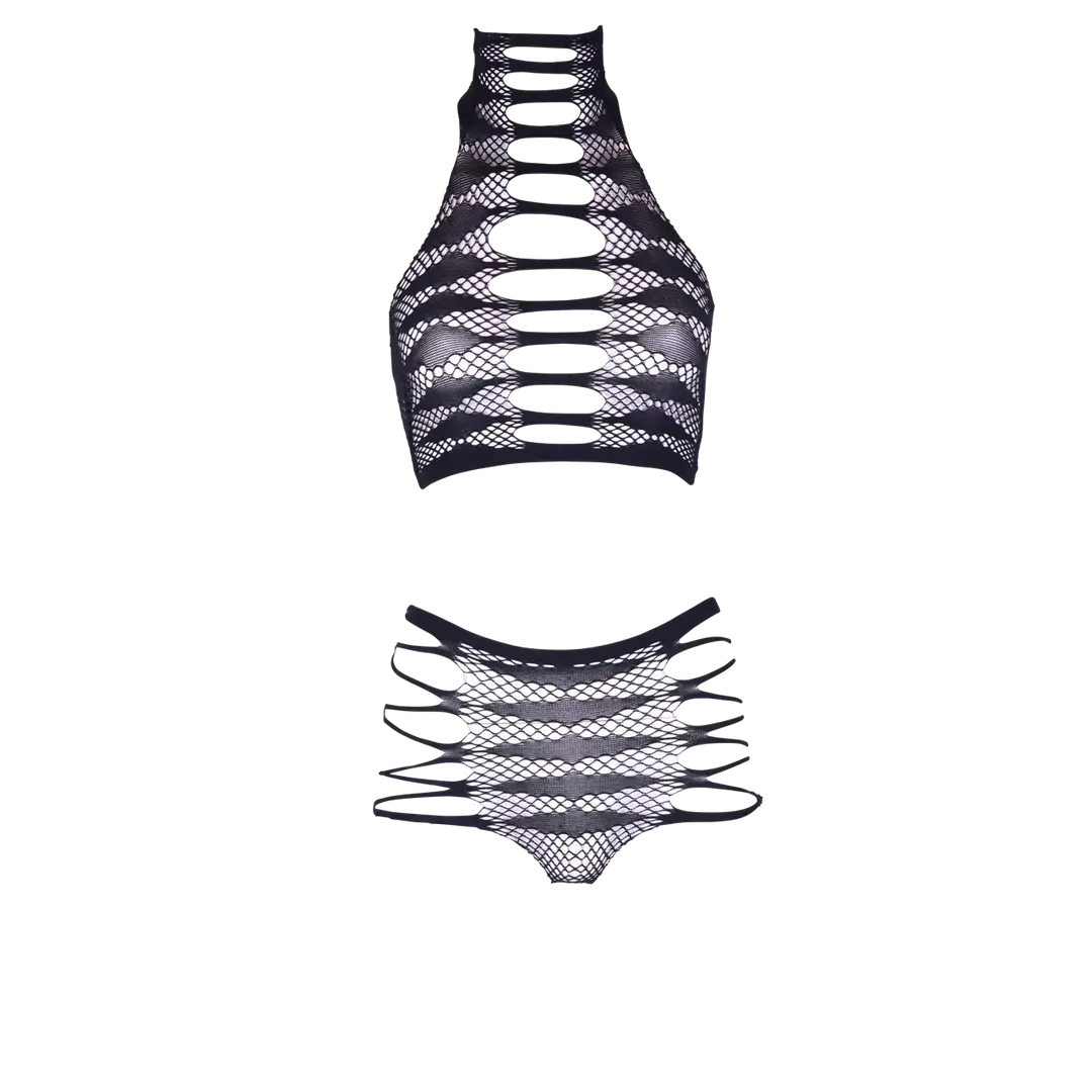 Soojendage ööd selle terava, tugeva ja äärmiselt seksika Carpo XLVI kahetükilise komplektiga. See showstopperiks loodud komplekt sisaldab kõrge kaelusega crop toppi ja sobivaid aluspükse. Kvaliteetne kangas kallistab teie figuuri täiuslikult, samas kui venivus tagab mugava ja figuuri rõhutava sobivuse XS–XL suurustele. Keerukad mustrid, mis on strateegiliselt paigutatud mõlemale osale, paljastavad teie nahka sensuaalsel viisil, muutes selle ideaalseks romantiliseks õhtuks või eriliseks kohtinguks.