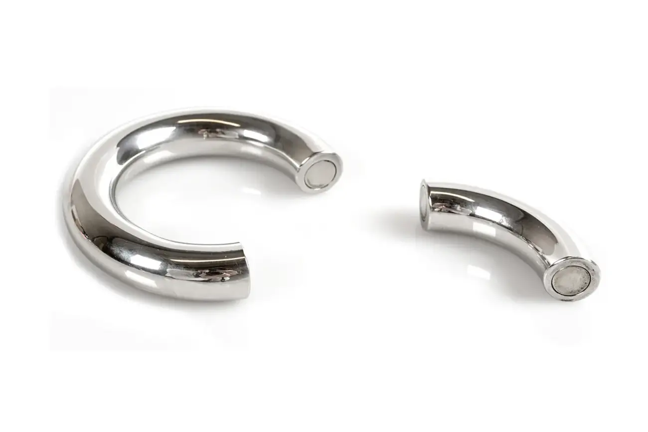 A simple concept with flawless execution. Powerful magnets hold the toy securely in place, with a removable wedge for easy use. Simply remove the wedge, slide your scrotum through the opening, and reattach the wedge. The strong magnets ensure the ring stays firmly locked—no tools or Allen keys required. It’s just as quick to remove, perfect for when you’re in a hurry. The ring is made from high-gloss polished stainless steel, a nearly indestructible material that’s easy to clean—built to last a lifetime.