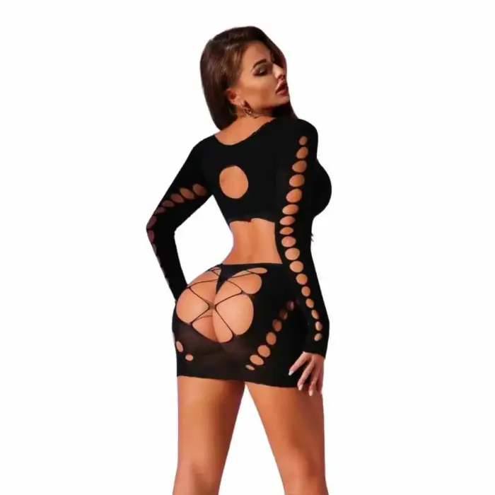 Velvet Passion Mesh Bodysuit with Open Crotch – Black – One Size