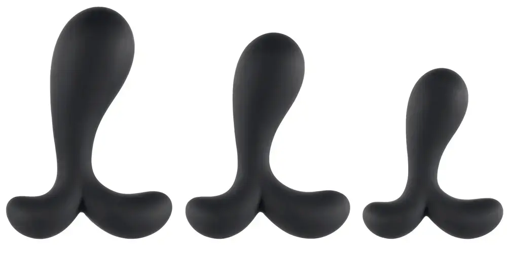 Šis ANOS analinių kištukų mokymo rinkinys skirtas prostatos stimuliacijai ir analinio tempimo treniruotėms. Jame yra trys skirtingų dydžių (S, M, L) silikoniniai analiniai kištukai, kurių kiekvienas turi šiek tiek išlenktą, išgaubtą galiuką, skirtą specifinei P-taško stimuliacijai. 2-rankis kamštis užtikrina saugų prigludimą ir patogų išėmimą. Pagamintas iš švelnaus, lankstaus silikono, užtikrinančio lengvą įkišimą ir maksimalų komfortą analinio mokymo metu.