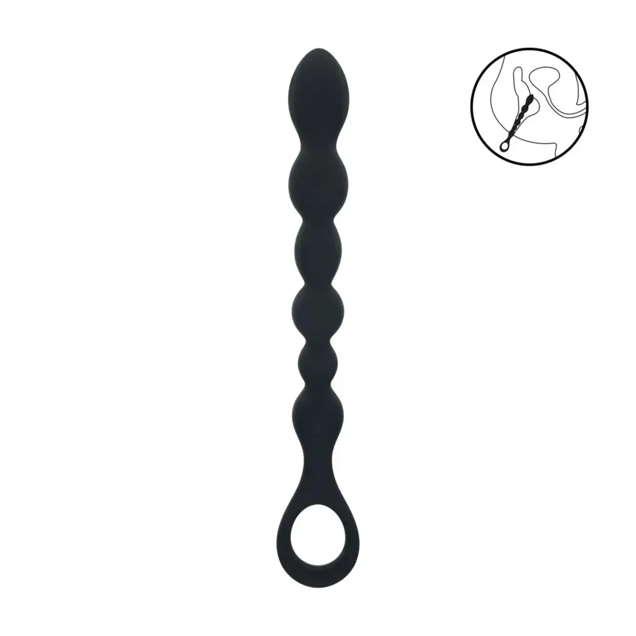Karoliukais puošta gyvatės formos silikoninis analinis kištukas su kilpa – 23+ cm – Juodas