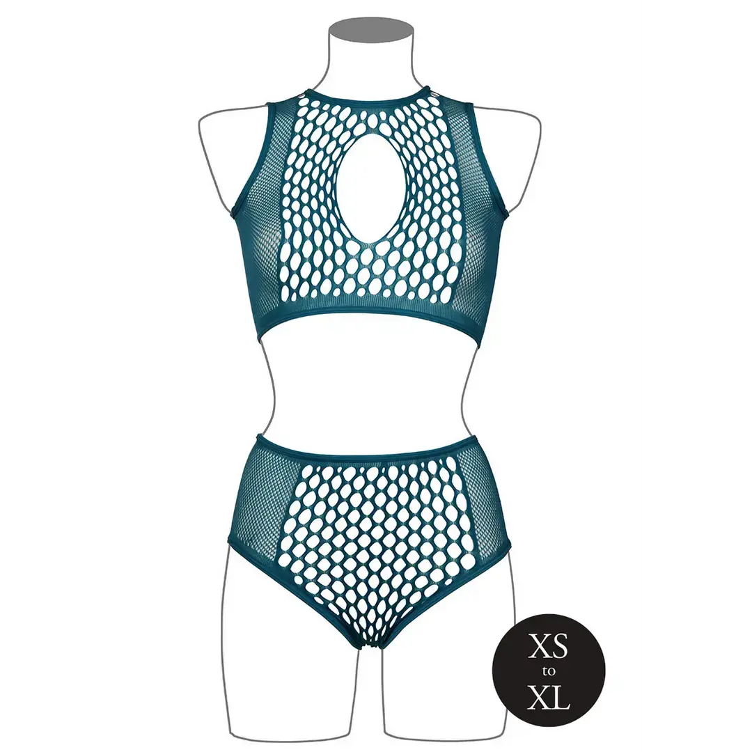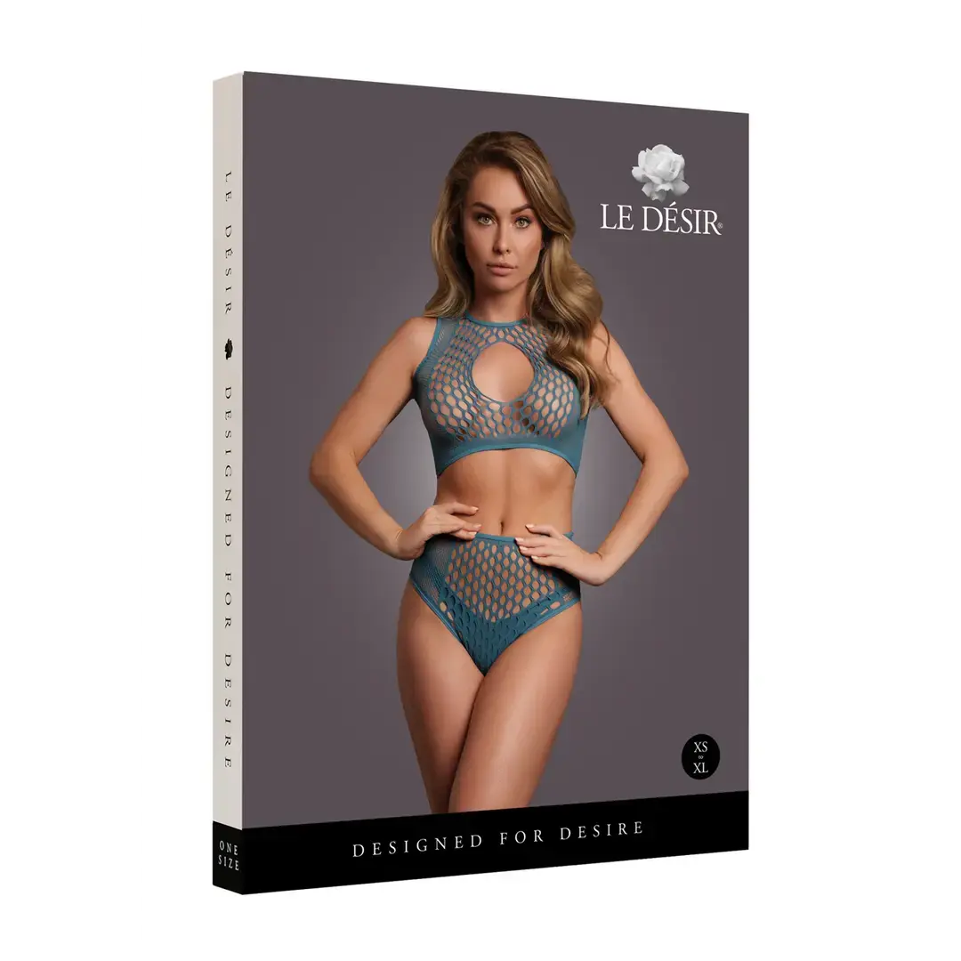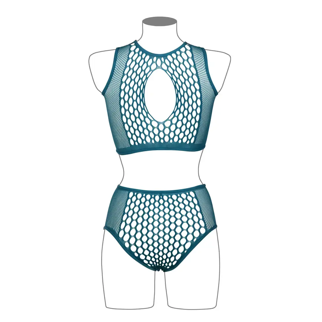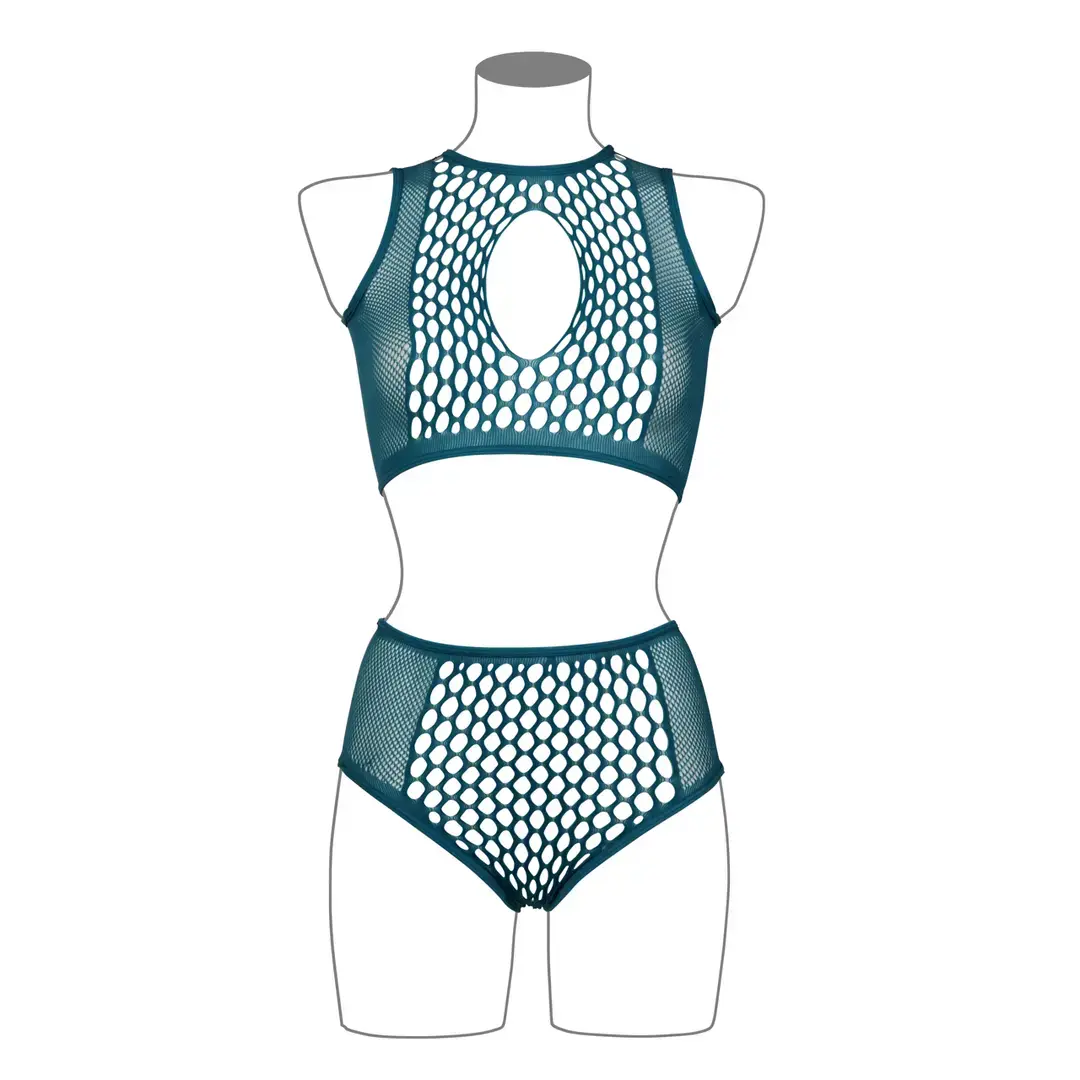 Этот элегантный комплект из двух предметов включает стильный топ и трусики с высокой талией, созданные для того, чтобы подчеркнуть ваш силуэт. Сочетание текстур сетки создает уникальный образ, а декоративный вырез добавляет нотку соблазна в вашу интимную коллекцию.