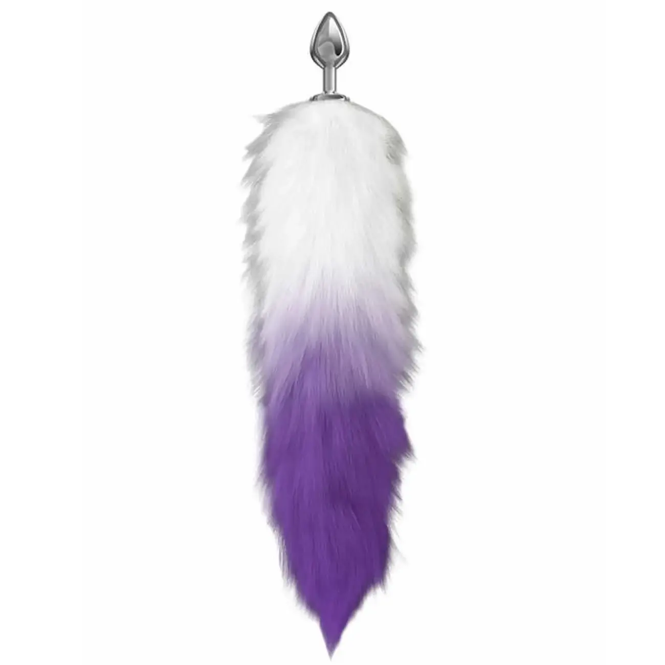 Эта анальная пробка оснащена шикарным фиолетово-белым пушистым меховым хвостом, который свободно свисает при вставке аксессуара. Пробка также служит пикантным украшением и захватывающим сюрпризом для вашего партнера. Игрушка изготовлена из серебристого металла со специальным гипоаллергенным покрытием, которое легко скользит, обеспечивая очень приятные ощущения. Рукав в форме капли на тонком стержне мягко входит в прямую кишку и надежно удерживается на месте.