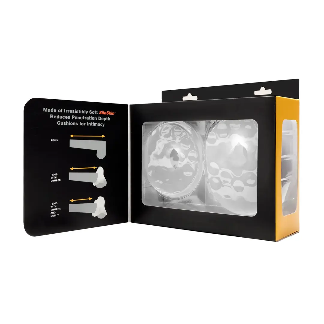 This hot new sex toy provides more cushion for the pushin' ...literally. Perfect Fit Brand has launched the Bumper, the first-ever adult product that cushions deep thrusts during intercourse, providing an opportunity for more passionate sex without restraint. Receiving Partners who express discomfort during intercourse with a partner may find pleasure in the Bumper's ability to make sex more enjoyable within their comfort zone. Penetrating Partners will still have the feeling of full insertion and intimate contact with their partner without having to hold back. For women, this also acts as a sexual health tool to lessen the chances of a bruised cervix. The Bumper is a system of two parts: The Bumper Thrust Buffer and the Donut Buffer. Either one can be used independently or together to create a thick and protective cushion for when the thrusts get deep. Made of ultra-soft SilaSkin material, the Bumper is also irresistibly soft and comfortable. The Bumper acts like a cushion between two partners to absorb some of the bumping and provide the sensation of maximum depth for the penis. The Bumper™ fits around the penis and is held in place by the testicles. The Bumper is also designed to be adjustable so users can add more cushions ( the Donut Buffers ) to suit their depth requirement. Now sexual partners can try avoided positions with new confidence and pleasure.