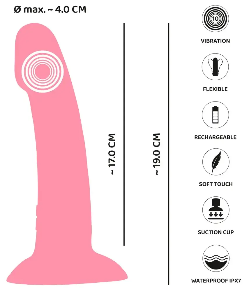 Ideāli piemērots solo spēlēm vai kopīgām izklaidēm, šis vibrators nodrošina brīvroku stimulāciju, pateicoties tā spēcīgajam piesūceknim. Tā elastīgais dizains un ķermenim drošais silikona materiāls nodrošina komfortu un pielāgojamību dažādās pozās. Jaudīgās vibrācijas, īpaši galā, piedāvā mērķtiecīgu baudu.
