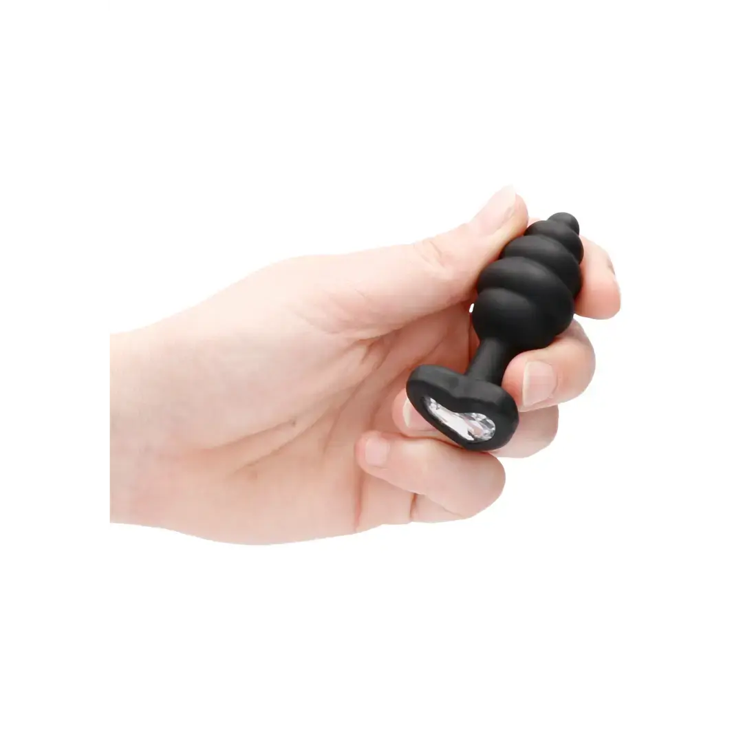 Rievots dimanta sirds anālais spraudnis – M – Melns