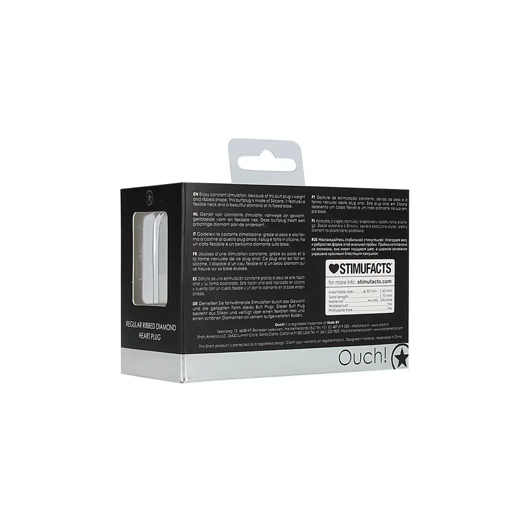 Enjoy constant stimulation with the weight and classic ribbed shape of this butt plug. Made of Silicone, it features a flexible neck and a beautiful diamond feature on its flared base.