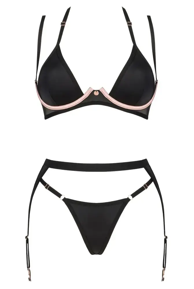 Obsessive Selinne 3-daļu apakšveļas komplekts – melns/rozā – M/L