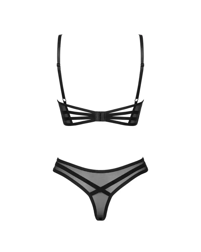 Obsessive Roxelia apakšveļas komplekts – caurspīdīgs tills un elastīgs materiāls – melns – XL/2XL