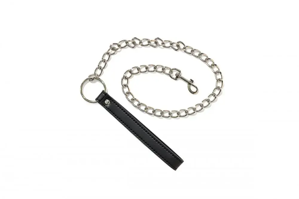 Smycz z metalową obrożą i czarną rączką. Niewolnik musi znać swoje miejsce. Powinien siedzieć na smyczy jak zwierzak. Musi być w stanie wykonywać polecenia. Aby wszystko tak było, potrzebny jest dobry kołnierz BDSM. Aby niewolnik był na smyczy i zawsze możesz pociągnąć za smycz, aby zwierzak przytulił się do twoich stóp.