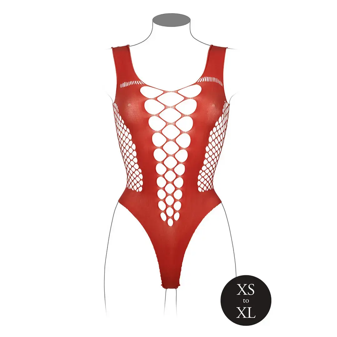 Bodijs ar dziļu V-izgriezumu un necaurspīdīgiem dekoriem – sarkans – One Size
