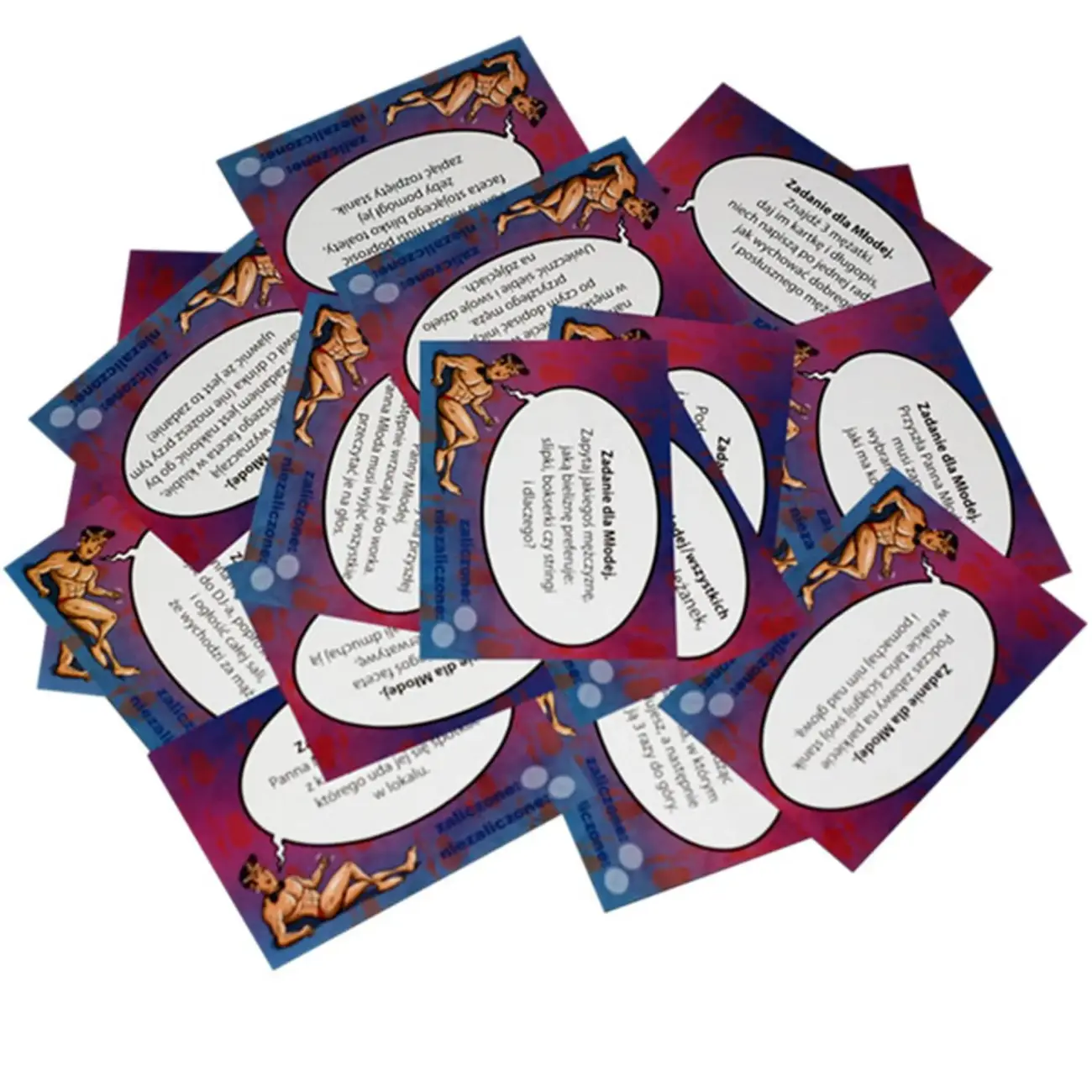 Format pojedynczej karty: A6 (105×148 mm). Zestaw zawiera 32 karty (31 poleceń +instrukcja)