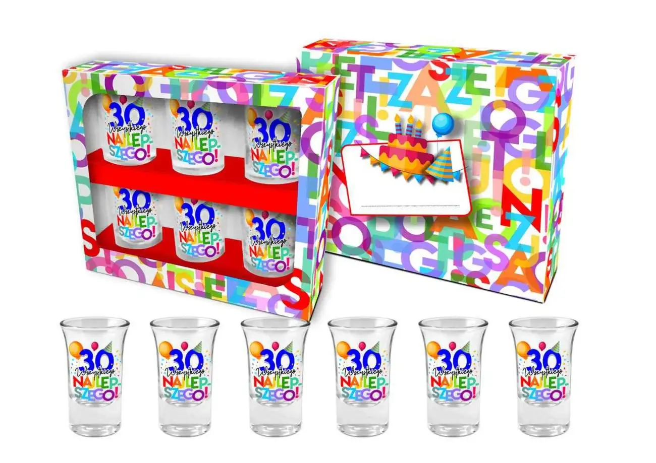 Szkło - URODZINOWE LITERKI 30 zestaw 6 kieliszków 35 ml