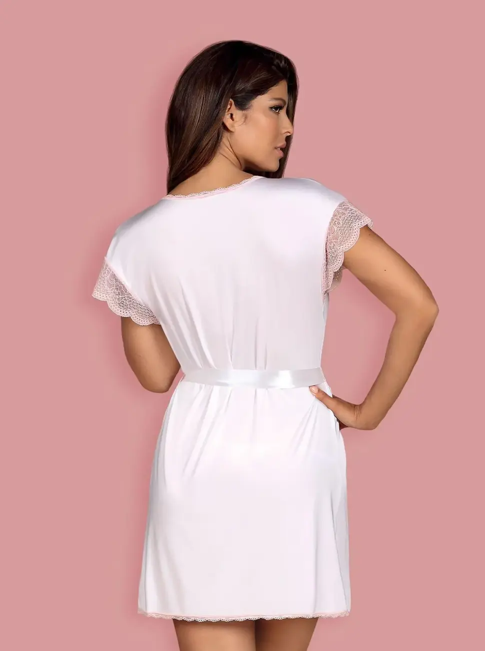 Ļaujieties tīras elegance nakts ar Girlly halāta un stringu komplektu. Šis izsmalcinātais ansamblis ir radīts, lai jūs justos neticami sievišķīgi un izskatītos satriecoši, neatkarīgi no tā, vai rotaļīgi slēpjaties vai vilinoši atklājaties. Mīkstais, gludais audums, ko rotā smalkas rozā mežģīnes, sola skaistu izskatu un izcilu komfortu.