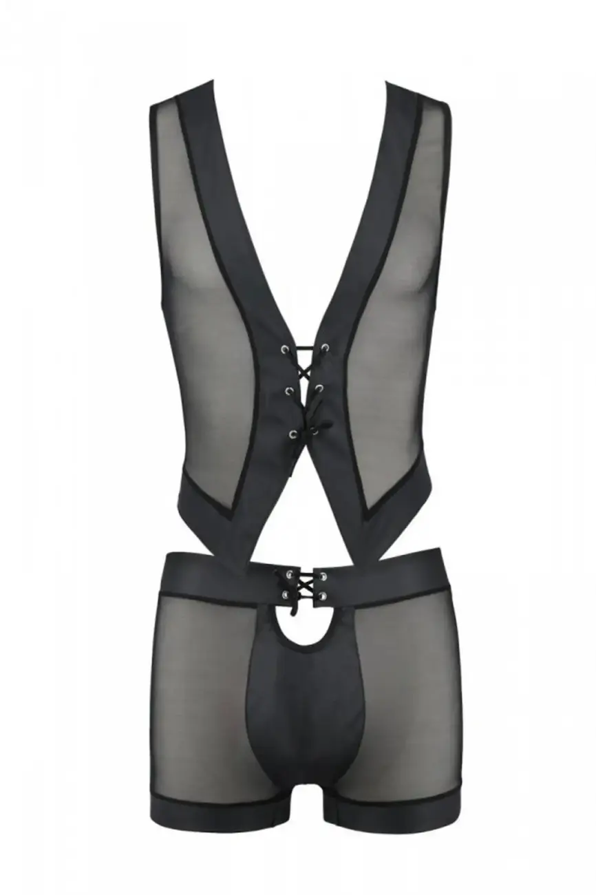 Šis Passion William komplekts piedāvā drosmīgu un valdzinošu izskatu, ideāli piemērots intīmiem vakariem. PU un poliestera materiālu kombinācija nodrošina ērtu, bet iespaidīgu piegriezumu, kas radīts, lai izceltos. Komplektā ietilpst šorti un veste, kas izgatavoti ar uzmanību detaļām un kvalitāti.