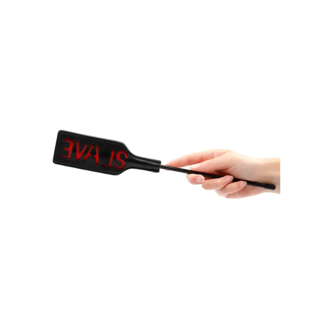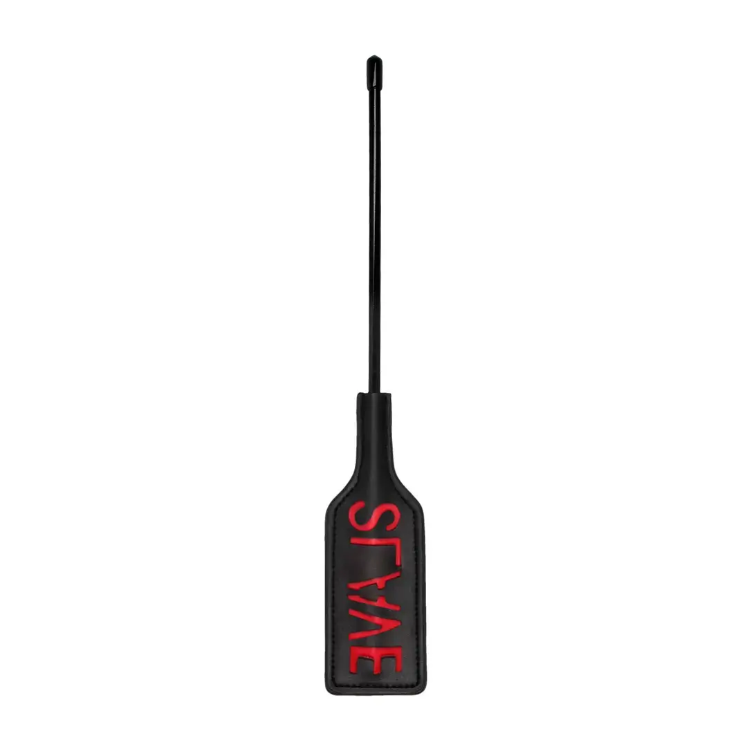 Leave a lasting impression on your partner. This short handled rectangular shaped crop is the perfect way to discipline your partner. Leave a lasting impression on your sub. The word SLAVE is reversed so it will show up on their skin.