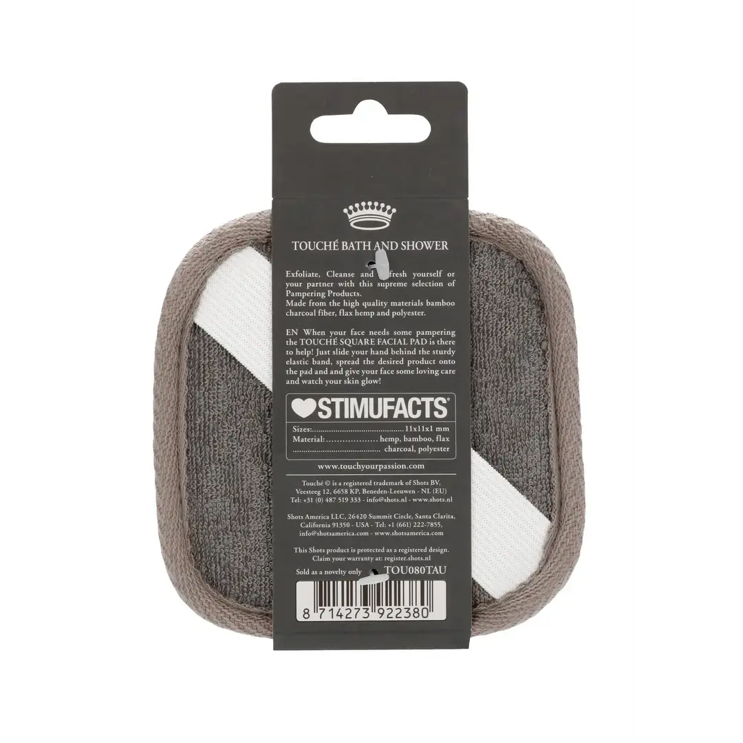 The Touché Square Facial Pad is the perfect accessory for cleansing and pampering your face. Use the pad together with your favourite facial cleanser and massage it gently into the skin for a radiant and silky smooth result. The Charcoal component helps to draw out daily impurities and gently remove the build up of dirt and toxins from your pores. The Hemp’s natural fibres are ideal for cleansing and restoring the skin’s natural balance, leaving you with an all-over healthy glow. Keep pimples and fine lines at bay with this simple daily cleansing regime. This product is equipped with an elastic band on the back for easy use during the cleansing process.