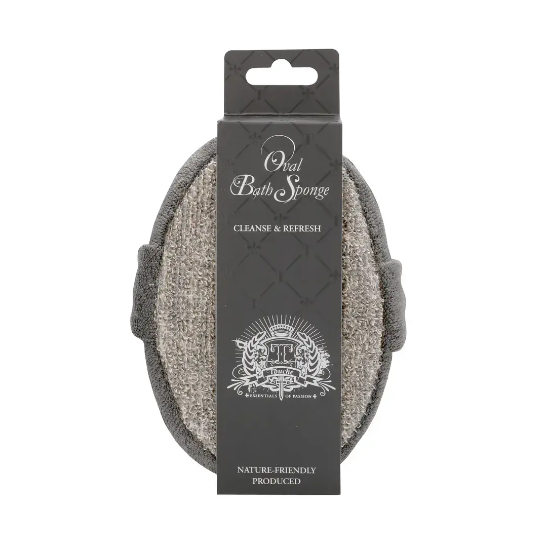 The Touché Oval Bath Sponge is the perfect accessory for cleansing and pampering your entire body. One side is silky smooth for a gentle polishing cleanse, while the other a rough scrub surface, for a thorough tingling exfoliating session. The natural fibres of Flax and Hemp are ideal for exfoliation and provide an all-over healthy glow to your skin. The Charcoal component helps draw out daily impurities and gently removes the build up of dirt and toxins from your pores. Just slip your hand through the elastic and add your preferred cleanser or body scrub and you’re ready to renew your skin to a vibrant glow.