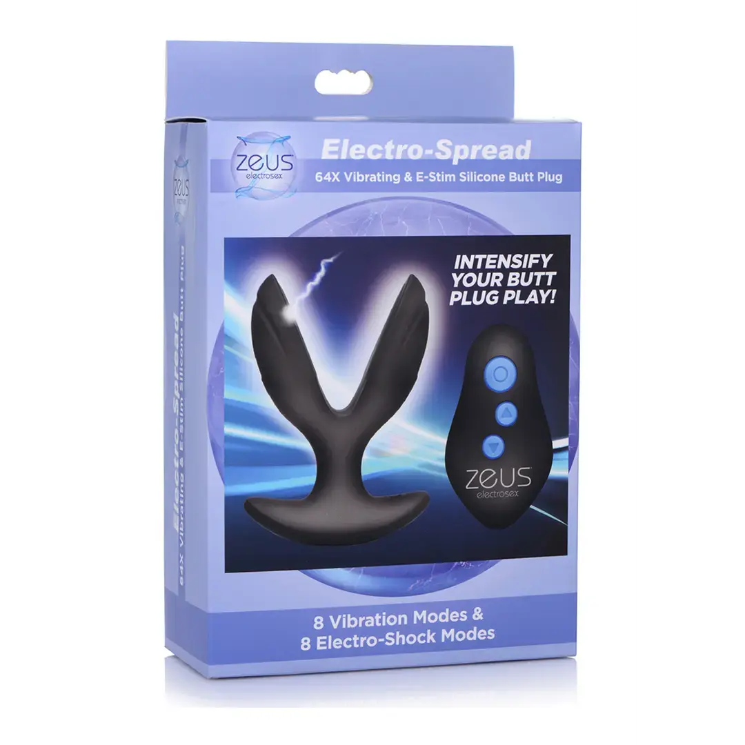 Experience intense pleasure with the Electro-Spread, a vibrating and e-stim silicone butt plug designed for thrilling sensations. Its unique anchor shape folds for easy insertion and opens up inside for a full, satisfying fill. Enjoy a combination of powerful vibrations and exciting electro-stimulation, from gentle tingles to intense waves, all controlled wirelessly.
