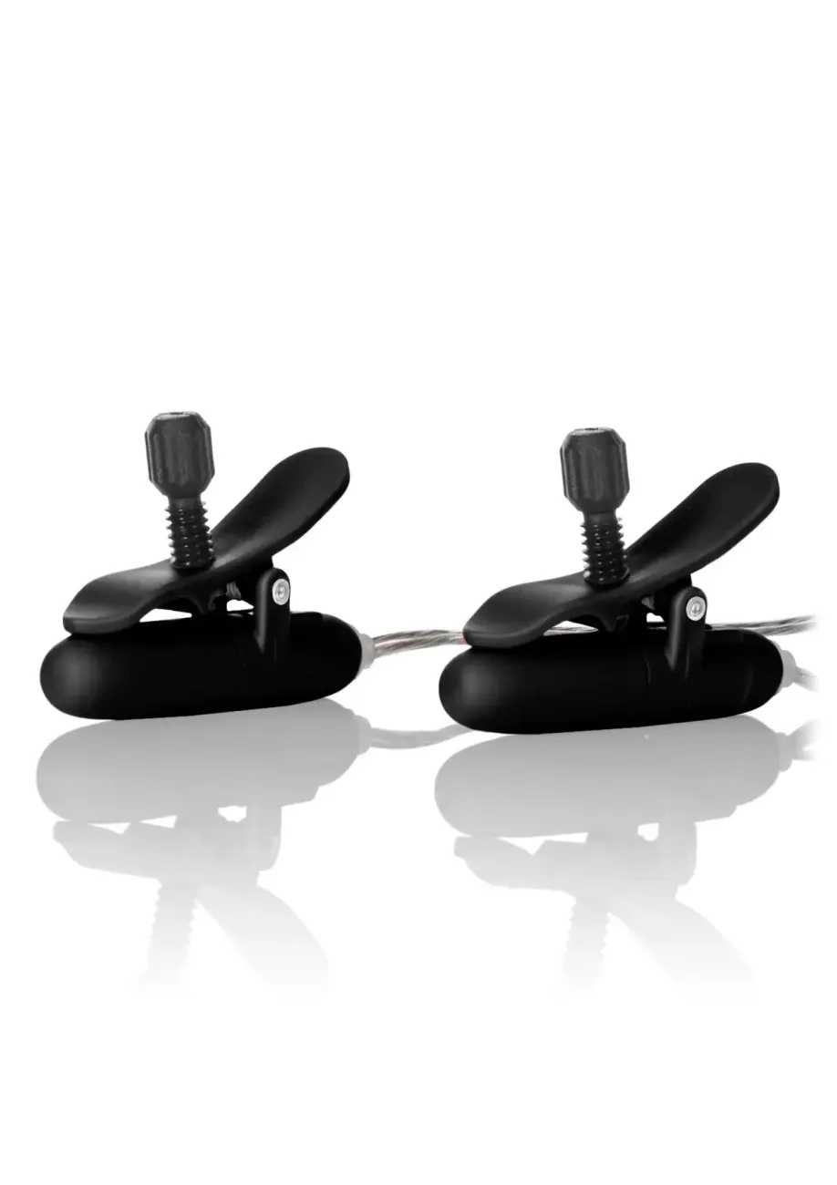 Kompaktās un diskrētās, necaurdurīgās skavas izmērs ir 1,5” x 1”/3,75cm x 2,5cm, un tās ir izgatavotas no ABS ar PU pārklājumu. Viegli pagriežamās neilona skrūves nodrošina ātru pielāgošanu ideālai pieguļai. Aktivizējot, krūtsgalu kairinātāji sasilst, vibrējot, nodrošinot neticami patīkamu apmierinājumu ar augstas intensitātes motoru un 2 ātrumu darbību.
