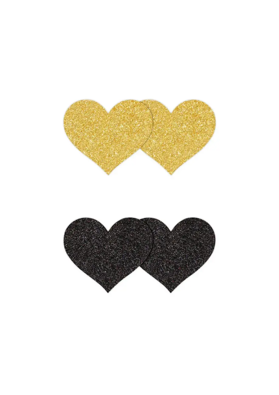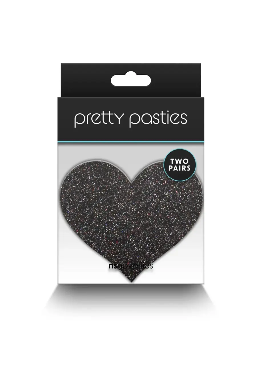 Mirdzošas sirds formas krūšu galu uzlīmes (2 pāri) – melnas