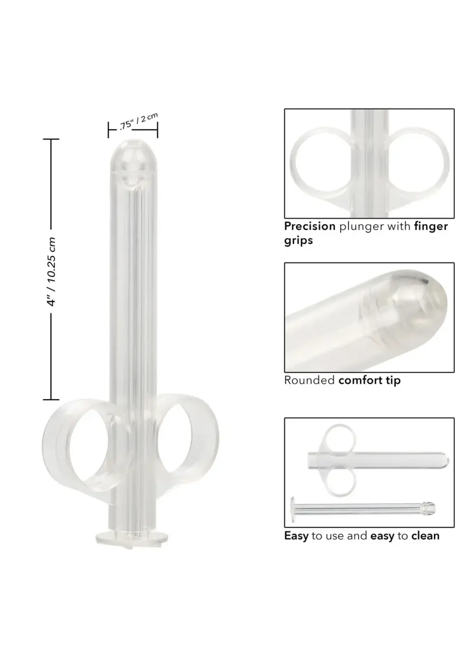 Reusable, refillable, and easy to clean, the XL Lube Tube is a lubricant dispensing tube that lets you lubricate with pinpoint precision and holds up to 0.75 fl oz of lubricant. To deliver luscious lubrication to just the right spot, the XL Lube Tube has a slim shaft, rounded tip and seamless body. The slim tube is equipped with two finger loops and an easy-to-use plunger that make it easy to control the lubricant flow.