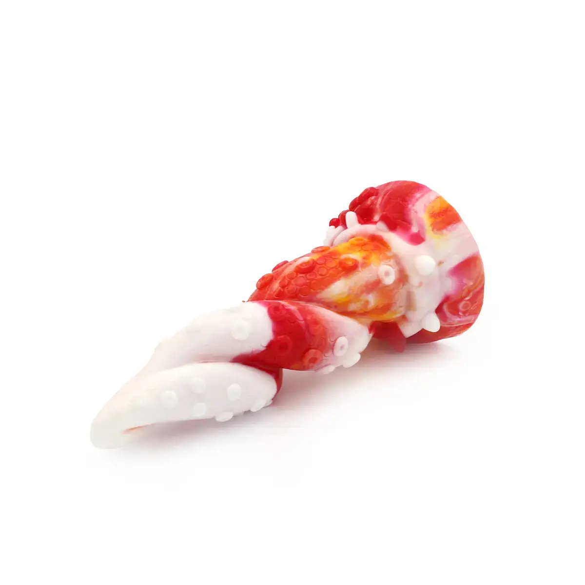Kiotos Monstar Beast Dildo izceļas ar unikālu astoņkāji iedvesmotu dizainu un valdzinošu tie-dye efektu. Sarkano, oranžo un balto krāsu sajaukums padara to par rotaļīgu papildinājumu jūsu intīmajām izbaudīšanām, piemērotu gan vaginālai, gan anālai lietošanai.