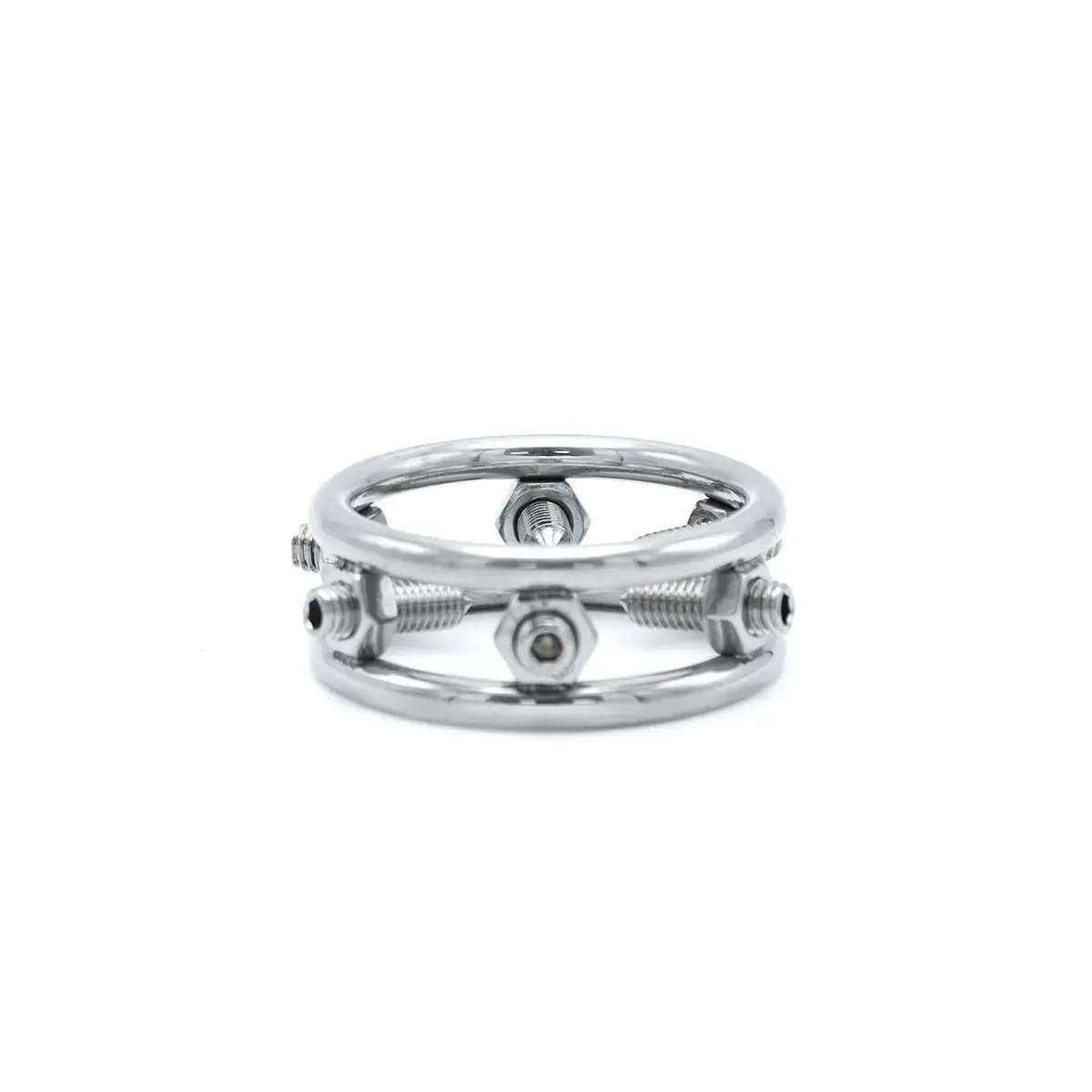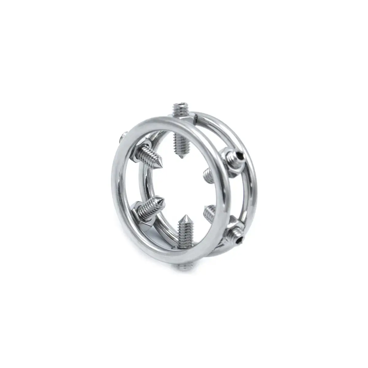 Šis tērauda glans dzimumlocekļa gredzens ir paredzēts intensīvām sajūtām. Tā iekšpusē ir 6 smaili, kurus var pagriezt uz āru ar komplektā iekļauto sešstūra atslēgu, lai pielāgotu sāpju līmeni. Uzlieciet to uz dzimumlocekļa galviņas un pagrieziet smailes pulksteņrādītāja virzienā, lai sasniegtu vēlamo intensitāti.