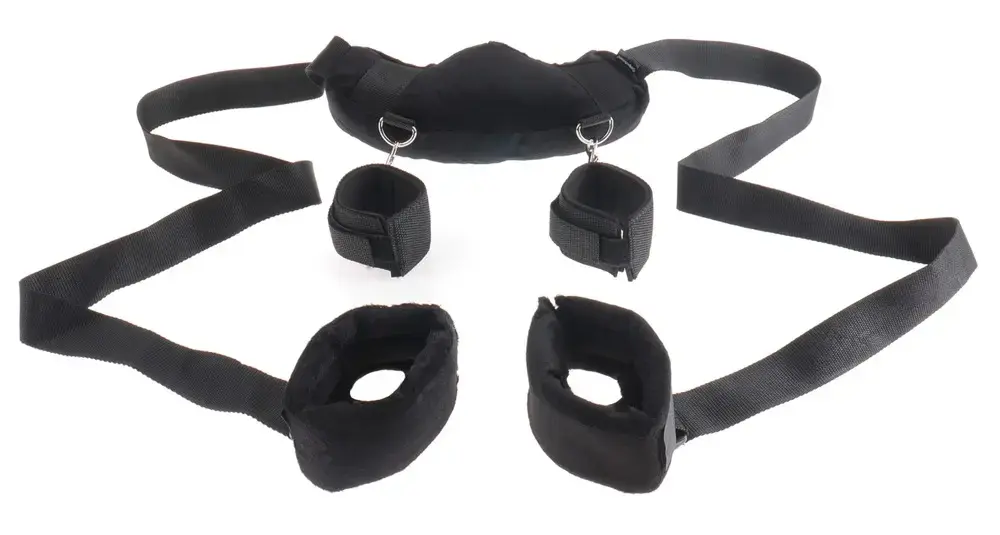 For quickly tying somebody up! The Position Master with Cuffs makes exciting restraining games possible! The restraints are comfortable and padded. They go around the neck, hands and ankles. The Position Master restrains the whole body in an exciting way in the blink of an eye. The straps are adjustable which means that lots of exciting combinations are possible for captivating love-making. Polyamide, metal.