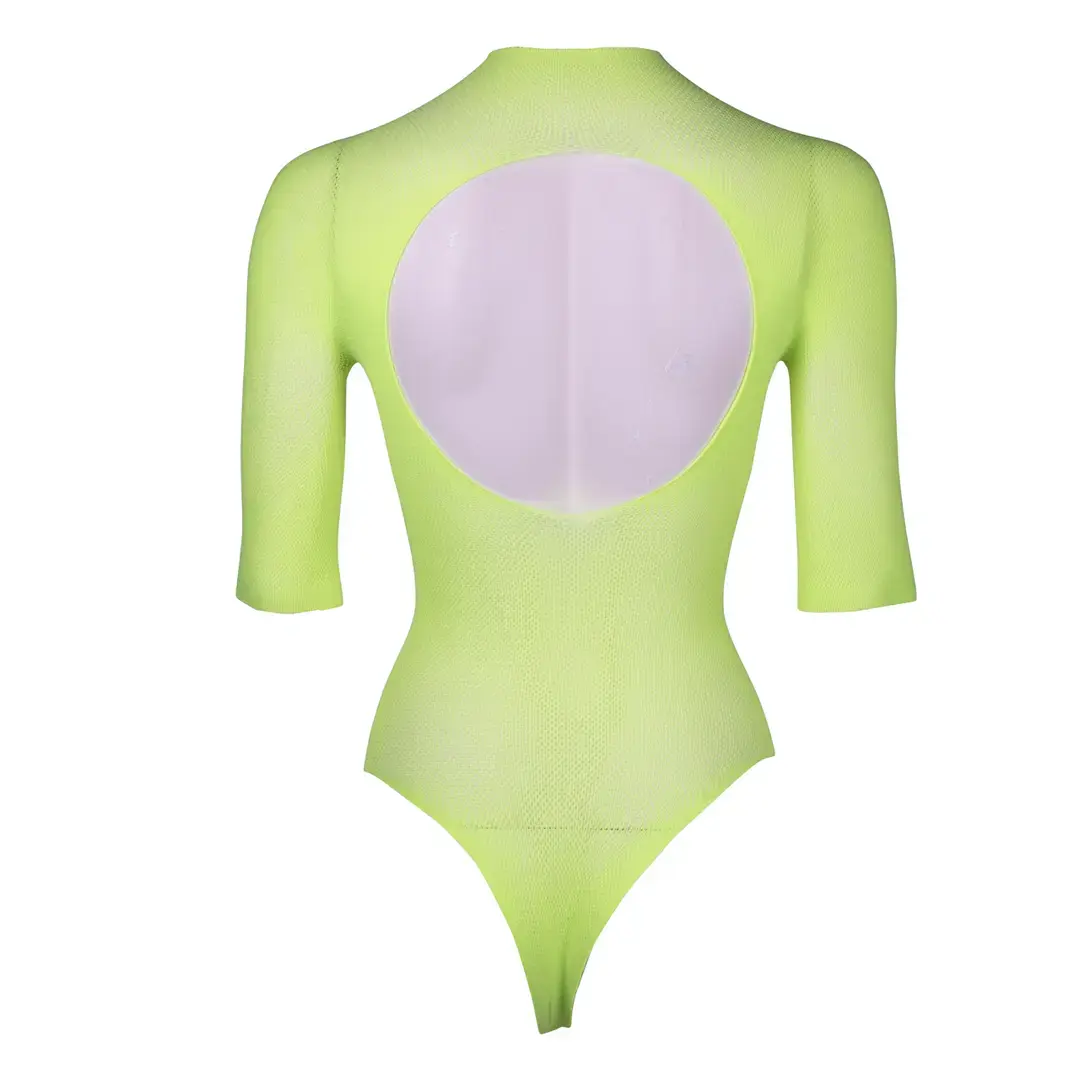 See elegantne võrkbodi on mugava ümara kaeluse ja stiilsete lühikeste varrukatega, muutes selle mitmekülgseks lisandiks teie intiimsesse garderoobi. Disain sisaldab peent kontrastset V-kaelust ja dekoratiivset avaust seljal, lisades võluvat aktsenti.