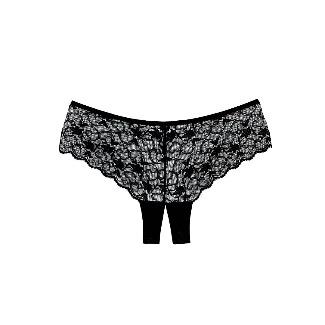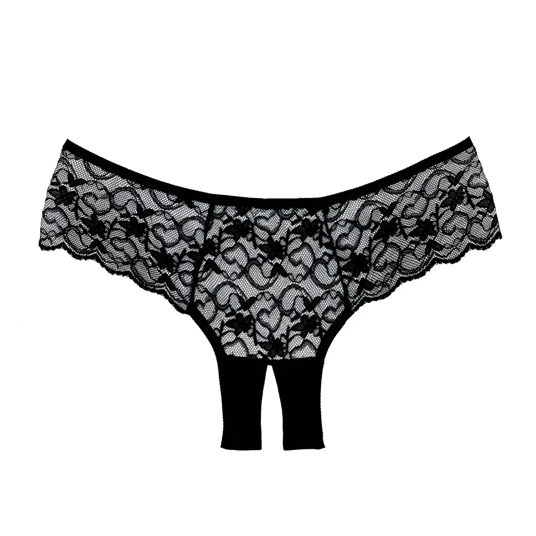 Nautige Sweetheart aluspükste romantilist võlu, mis on loodud teie kumerusi rõhutama õrna pitsiga. Need poiss-lõikega aluspüksid pakuvad meelitavat istuvust, kattes puusad ja tuharad, samas kui avatud jalgevahe lisab intiimsele kollektsioonile provokatiivset sarmi.