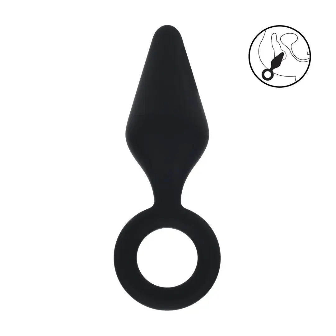 Silikoninis analinis kištukas su kilpa – M – Juodas