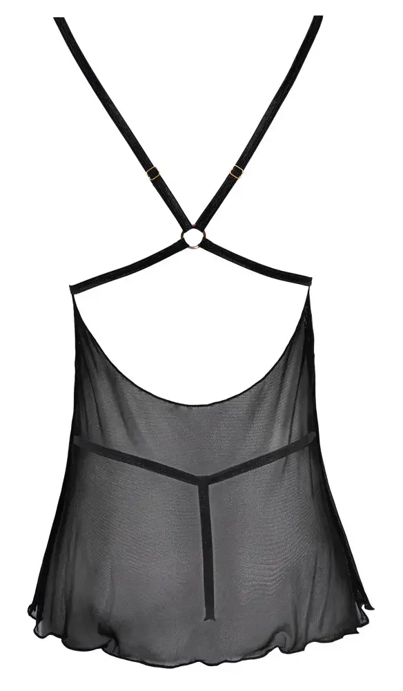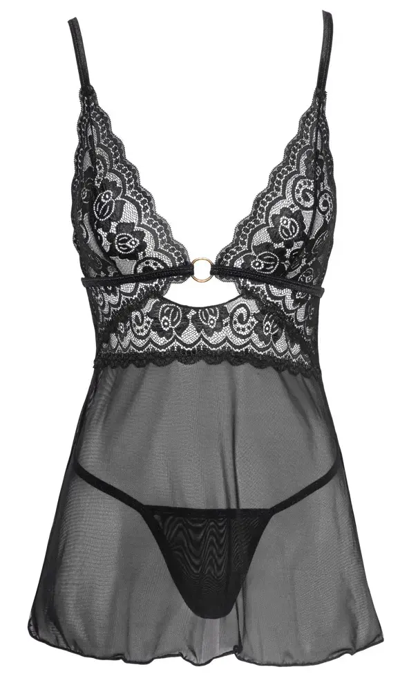 Этот соблазнительный и игривый комплект babydoll от Cottelli LINGERIE изготовлен из эластичной, нежной ткани powernet, обеспечивая прозрачный и манящий вид. Он имеет кружевные чашечки, украшенные золотистым кольцом, а бретели под грудью и бретели бюстгальтера сходятся сзади, удерживаемые другим золотистым кольцом. Регулируемые бретели бюстгальтера обеспечивают идеальную посадку, а комплект дополняют классические стринги из ткани powernet.