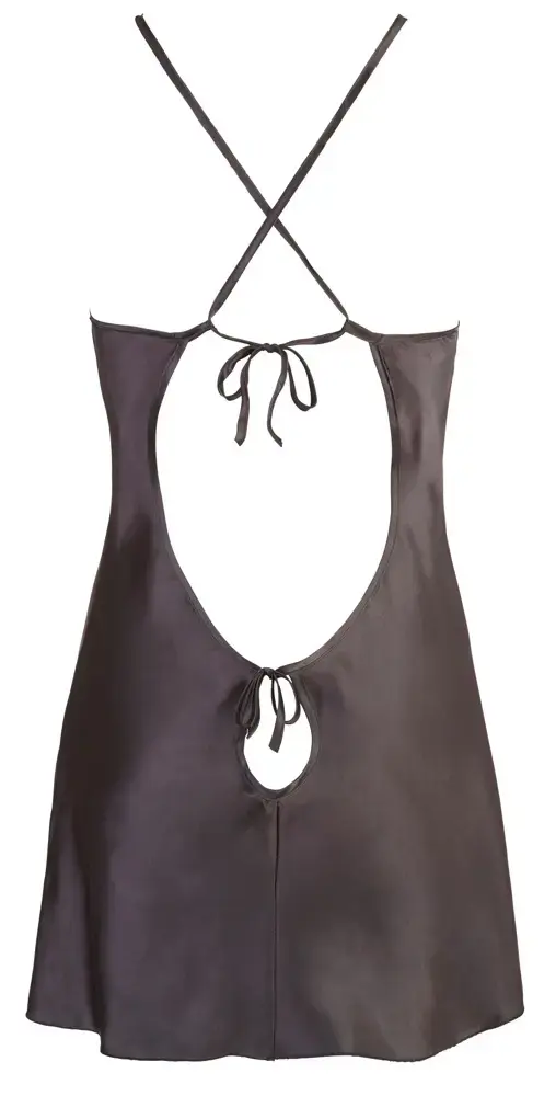 Это чудесное чёрное изделие нижнего белья представляет собой короткую сорочку из блестящего атласа. С очень глубоким вырезом на спине и регулируемыми бретелями-спагетти для идеальной посадки, оно предлагает как очарование, так и комфорт для интимных вечеров.