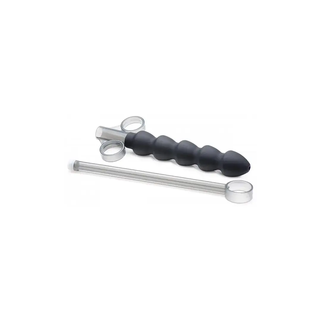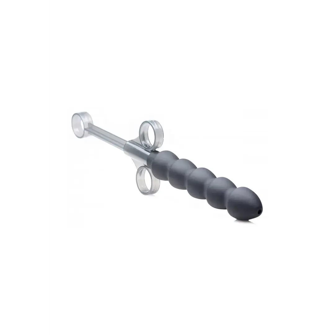 Equipped with 5 links for added pleasure, this lubericant launcher delivers a precise application so that your sensual experience does not have to be messy! The plunger is designed for one-handed ease of use. With the convenient finger loops you can fill the applicator with whatever liquid you want and inject with one simple thrust. The XL size holds over twice the amount of lube of most launchers, so you can get the job done with less steps! Made of premium silicone, this lubricant applicator is compatible with water-based and oil-based lubricants only. This non-porous and phthalate-free material cleans easily with mild soap or toy cleaner.