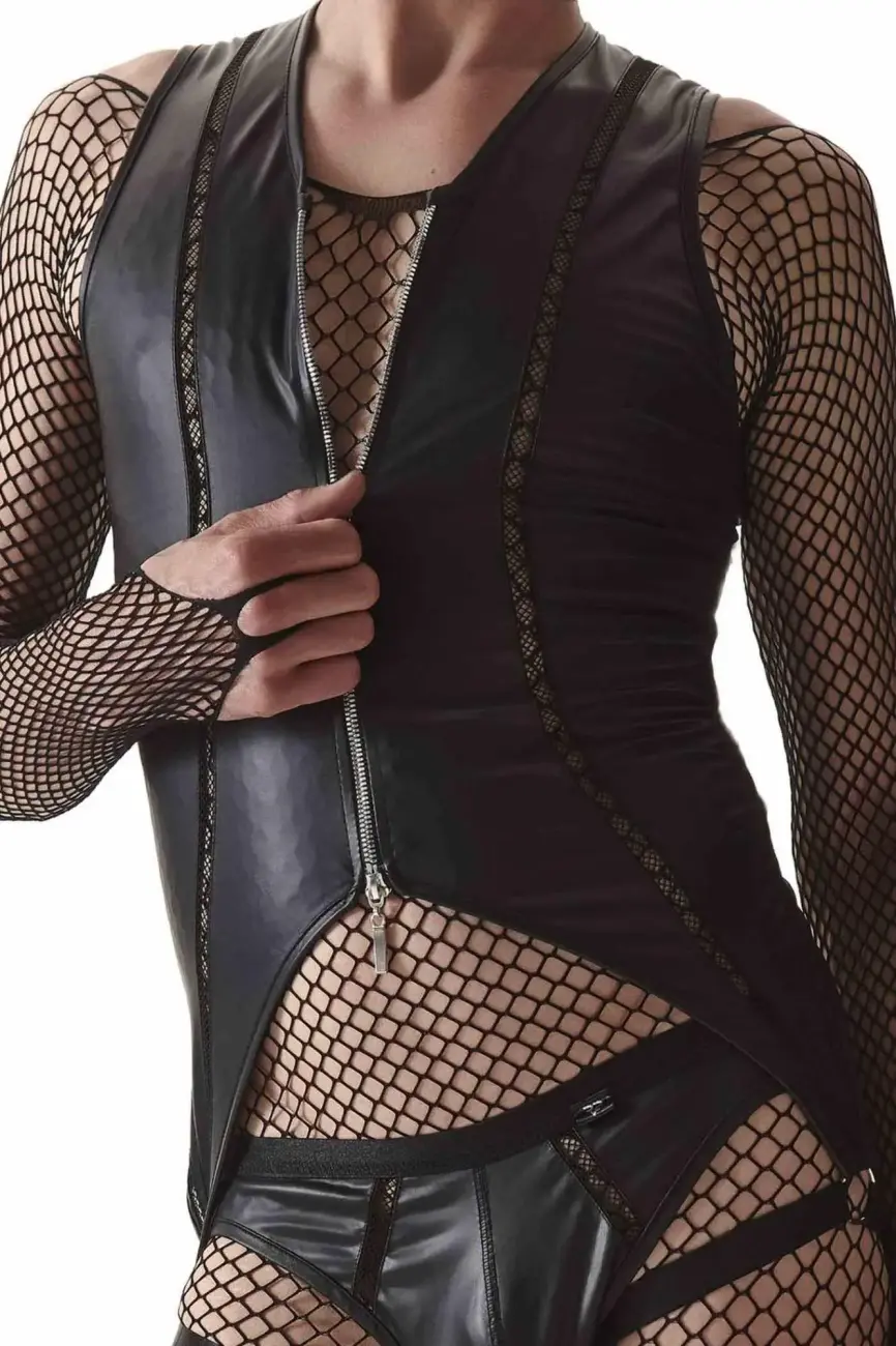 Идеально подходит для интимных вечеров или особых случаев, этот комплект предлагает сочетание провокационного дизайна и комфортного ношения. Комбинация материала wet look и сетки создает очаровательный образ.